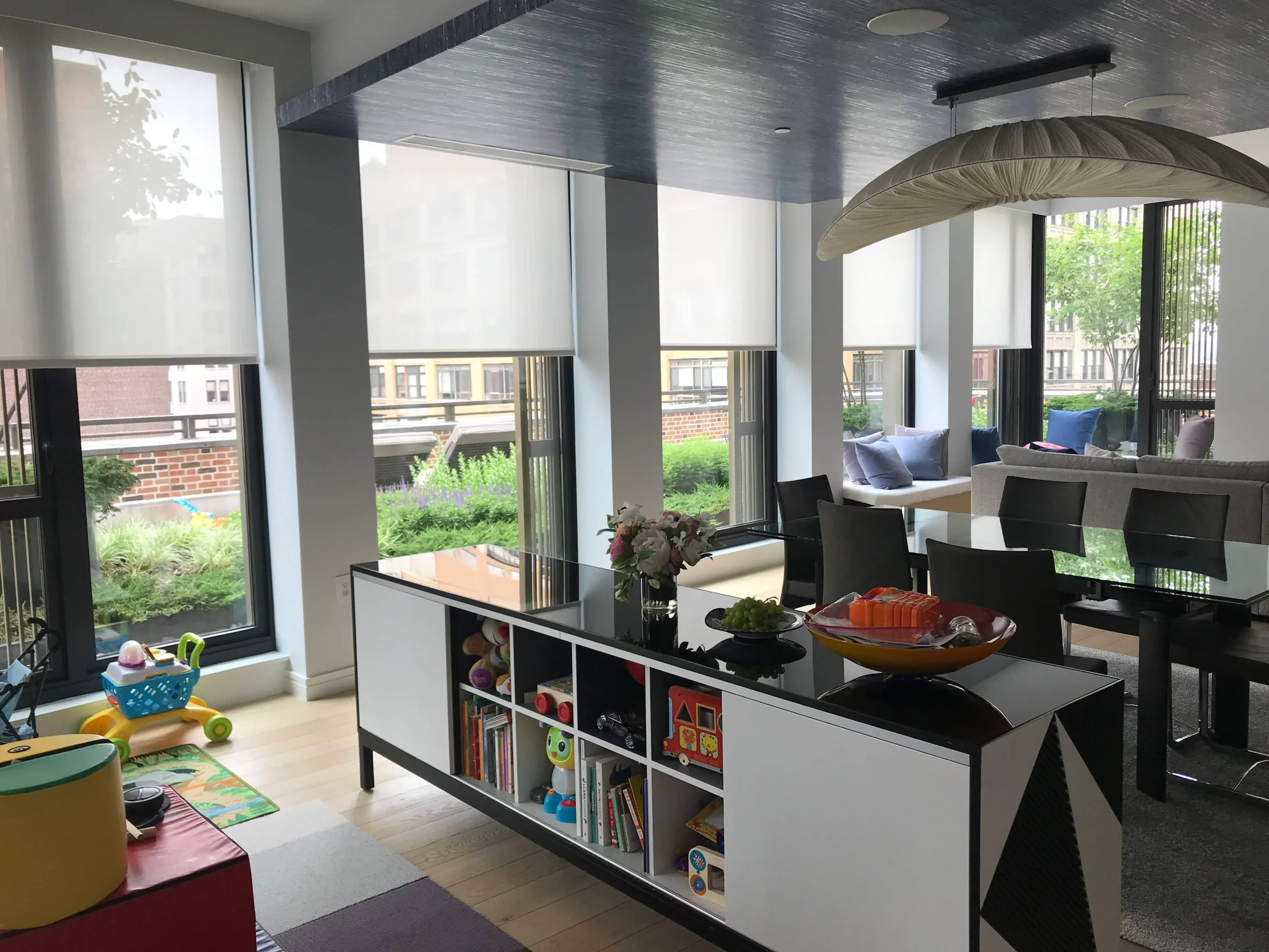 Alluring Window installs state-of-the-art somfy and lutron motorized window treatments, which you can operate with the touch of a button and program to open and close on your schedule.